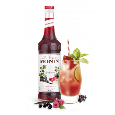 MONIN Grenadina sirup se chlubí příchutí červeného rybízu s nádechem vanilky a jasnou červenou barvou tolik žádoucí v nealko nápojích, cocktailech, dezertech, marinádách a několika dalších recepturách. Barva: Jasně červená s oranžovými problesky.